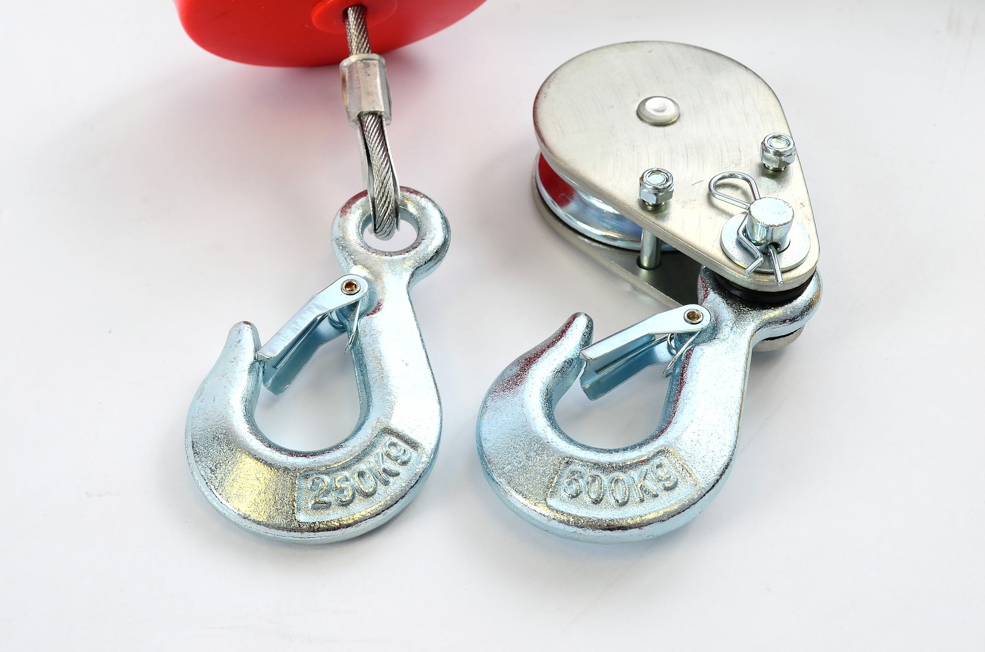 The 500kg Electric Hoist is a powerful and versatile lifting solution designed for workshops, job sites, barns, and home use. Supplied with support brackets, a pulley, and remote lifting control, it provides two capacity options—250kg without the pulley and 500kg with. The hoist offers a lifting height of 12m at 250kg or 6m at 500kg, making it suitable for a variety of lifting tasks. An emergency stop button is integrated into the control switch for enhanced safety, and its IP54 rating allows outdoor use (not in rain).